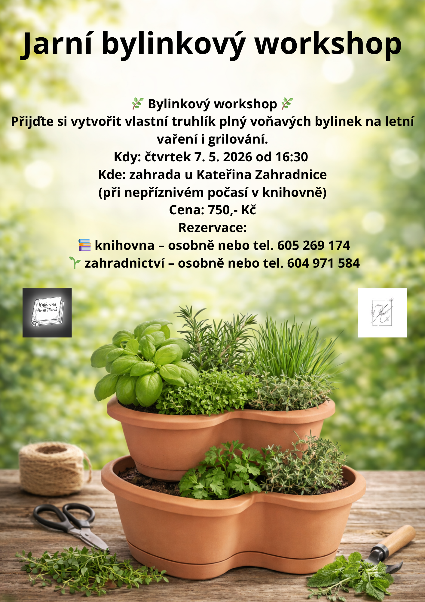 Máte rádi čerstvé bylinky do kuchyně? Přijďte si vytvořit vlastní truhlík plný voňavých bylinek, které využijete při letním vaření i grilování. Rezervace: v knihovně – osobně či na tel. 605 269 174 nebo v zahradnictví – osobně nebo na tel. 604 971 584. Těšíme se na společné tvoření.